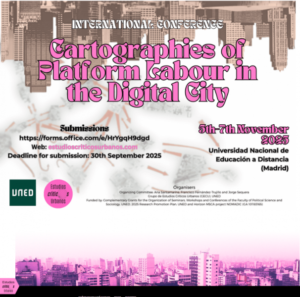 En la web del congreso encontraréis toda la información detallada y el programa completo: https://estudioscriticosurbanos.com/2025/09/04/international-conference-cartographies-of-platform-labour-in-the-digital-city/
